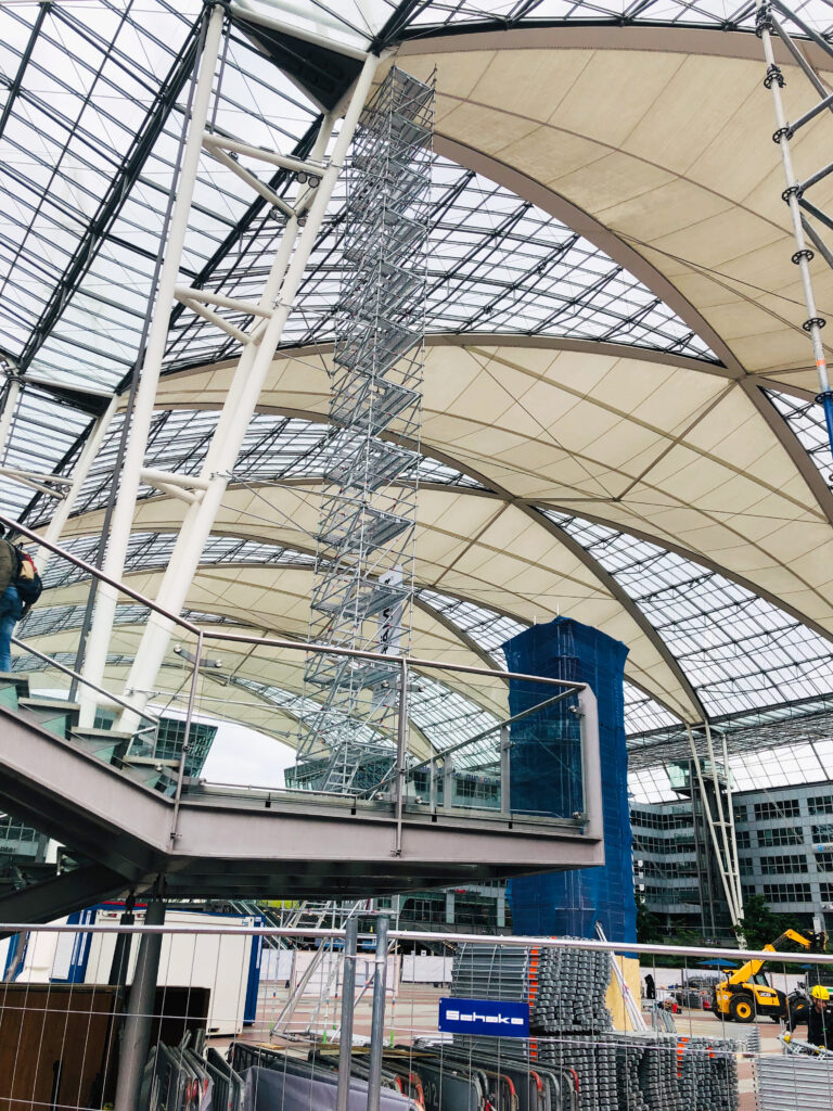 Am Flughafen München im MAC Forum stand eine besondere Aufgabe an: Für den Segeltausch der markanten Dachkonstruktion musste die Zugänglichkeit für Monteure während der gespannten Dachsegel gewährleistet werden. Hierbei waren höchste Präzision, Sicherheit und Innovationskraft gefordert. Innovative Sonderkonstruktion Wir entwickelten und konstruierten eine maßgeschneiderte Sonderkonsole, die direkt am Stahlbau des Gebäudes verankert wurde. An dieser […]