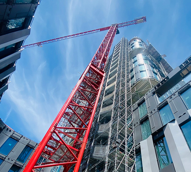 Für den Neubau des Optineo im Münchner Werksviertel waren höchste Anforderungen an Sicherheit, Effizienz und Logistik gefragt. Unser Team von Krämer Gerüstbau übernahm dabei die komplette Projektierung und Umsetzung der Gerüst- und Aufzugslösungen.